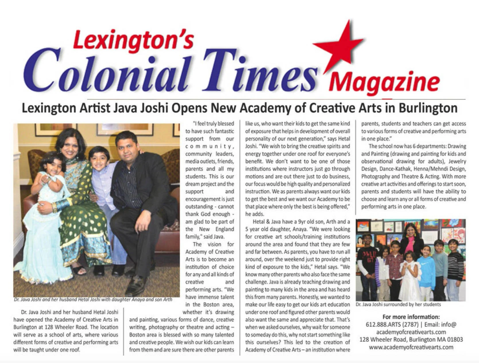 Colonial Times - New Academy Of Creative Arts Opens in Burlington