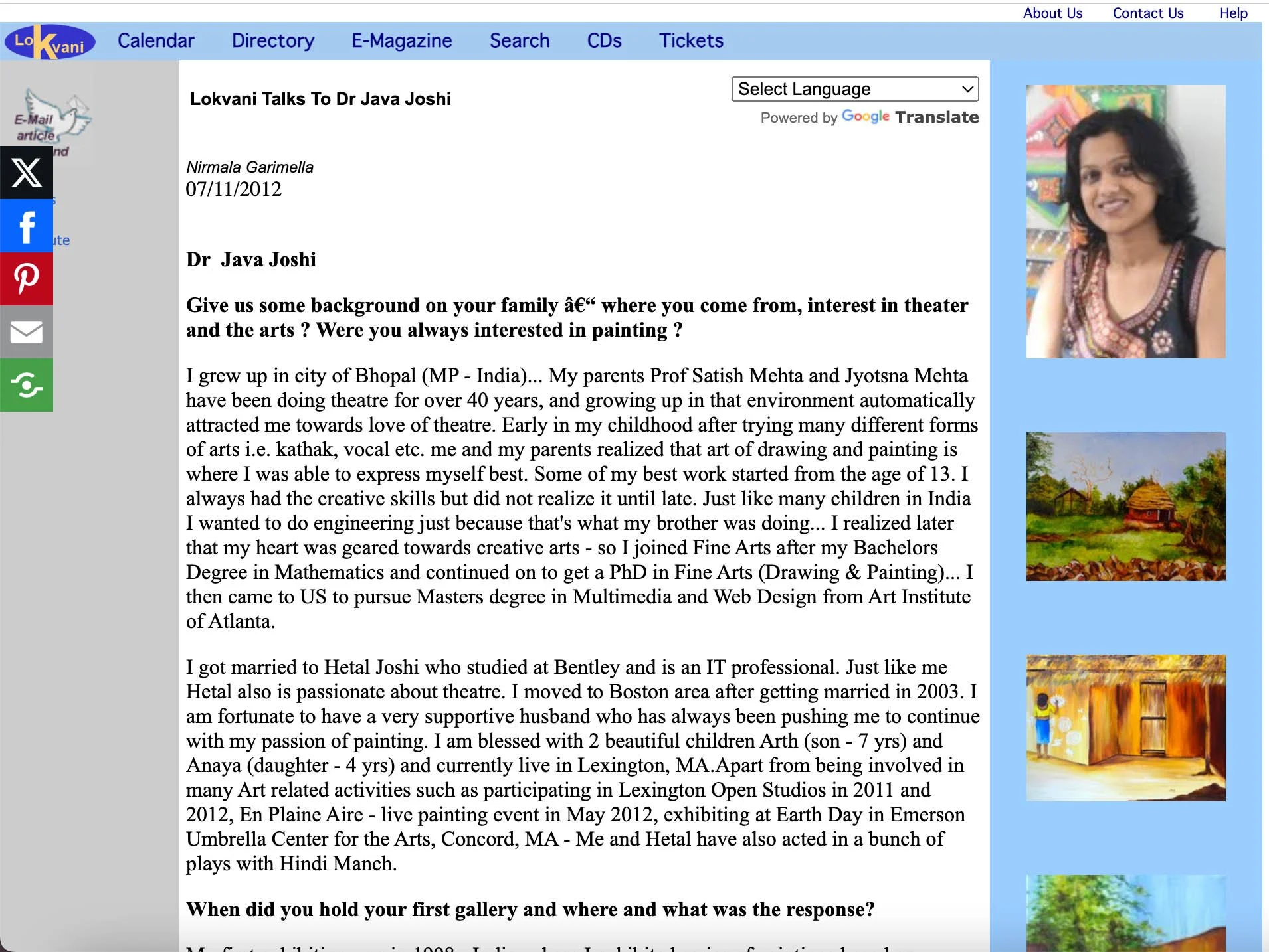 Java’s interview in Boston’s E-Magazine “Lokvani” - July 11, 2012